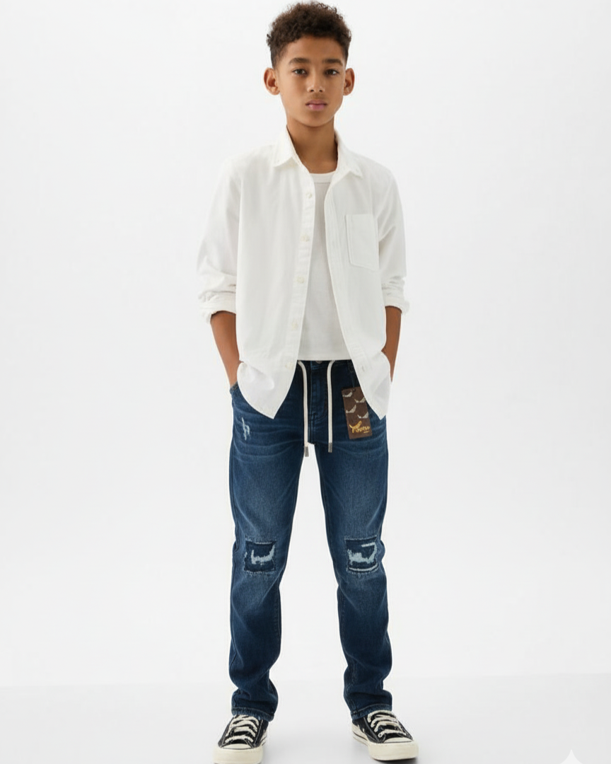 Jean de Niño Ekkos, Diseñado para los más pequeños que no paran ni un segundo. Confeccionado con denim premium de alta resistencia, combina la comodidad que necesitan para jugar con el estilo que define a Pupilos.